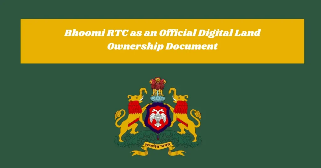 Bhoomi Online  as an Official Digital Land Ownership Document an official digital land record system introduced by the Government of Karnataka to provide easy, transparent, and reliable access to land ownership details. RTC stands for Record of Rights, Tenancy, and Crops, and the Bhoomi portal has transformed this traditionally paper-based record into a secure online document. By digitizing land records, Bhoomi RTC has reduced disputes, improved efficiency, and made land-related services accessible to citizens from anywhere.